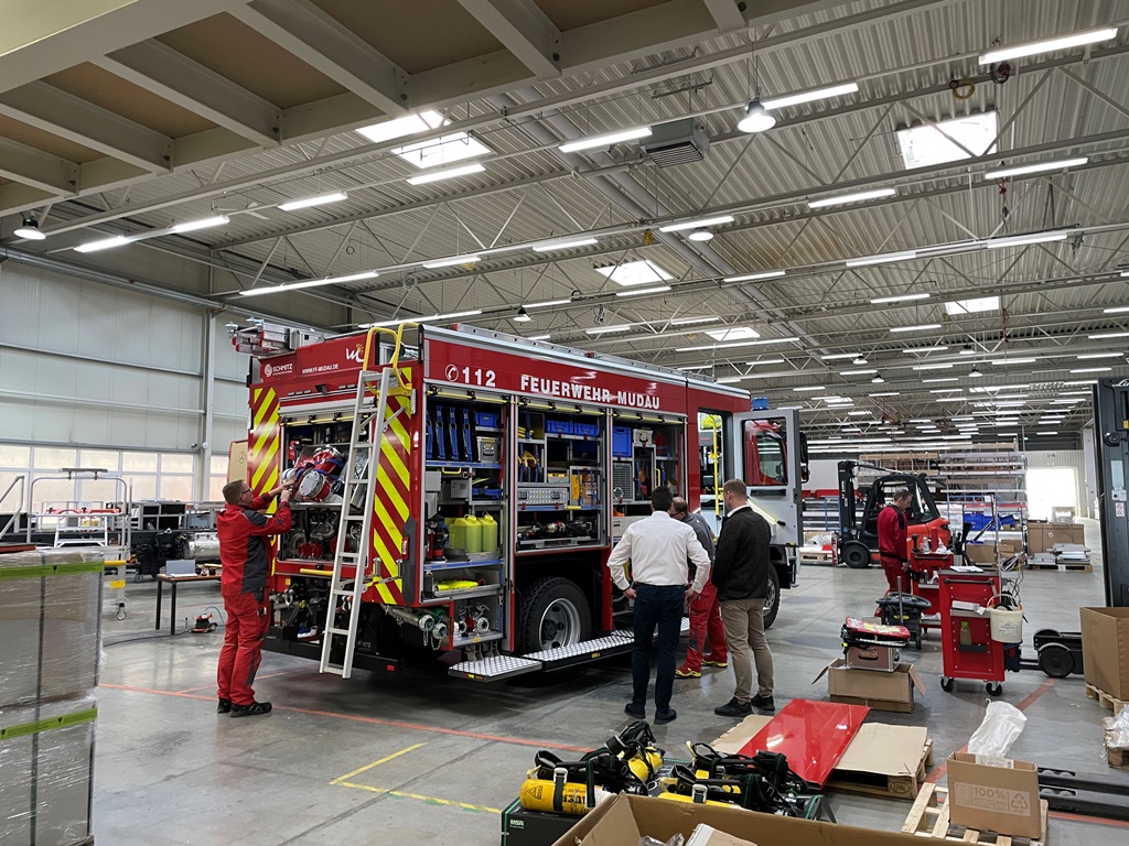 Mudau | Gegen 18:30 Uhr war es endlich soweit, dass neue Löschgruppenfahrzeug 20 (LF 20) traf nach ca. 6 stündiger Fahrt von Nobitz nach Mudau ein. Bei einem kleinen Umtrunk im Feuerwehrhaus hatte jeder die Möglichkeit das neue Fahrzeug genau anzuschauen bevor in den nächsten Tagen die intensiven Übungen zur Indienststellung erfolgen werden. Das Fahrzeug wurde bei der Firma Schmitz Feuerwehrtechnik in Nobitz aufgebaut und von einer kleinen Delegation am Tag vorher technisch und kaufmännisch abgenommen. Die Einweihung wird im Rahmen des 160jährigen Jubiläum im Juni 2026 erfolgen.
