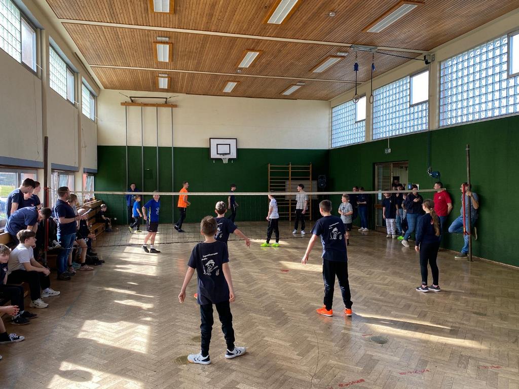 Schloßau | Das Gemeindeturnier unter Beteiligung aller Jugendabteilungen der Mudauer Feuerwehren hat sich zu einer lieb gewordenen Tradition entwickelt. Das tolle daran sind die jährlich wechselnden Sportarten, in denen sich die Jugendlichen um den Wanderpokal der Gemeinde messen können. Wie Mudaus Abteilungskommandant Manfred Müller von der Gesamtorganisation erläuterte, hatte man in diesem Jahr Ringtennis ins Visier genommen und den Wettkampf in die Schulturnhalle Schloßau verlegt.