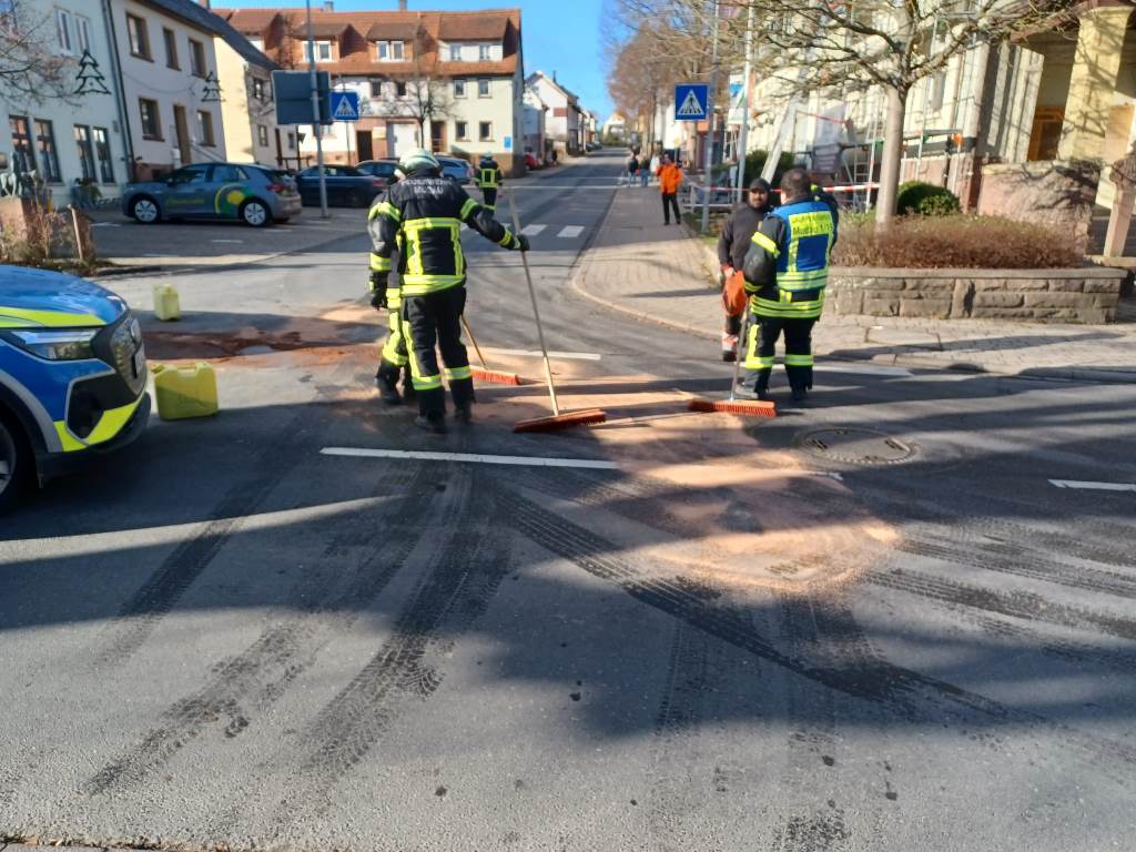 Mudau | Zu einer Ölspur nach einem Verkehrsunfall im Kreuzungsbereich des Rathauses wurde die Abteilung Mudau gegen 13 Uhr alarmiert. Die ausgelaufenen Betriebsstoffe wurden gebunden und die Einsatzstelle abgesichert. Im weiteren Verlauf wurde der Abschleppdienst unterstützt.